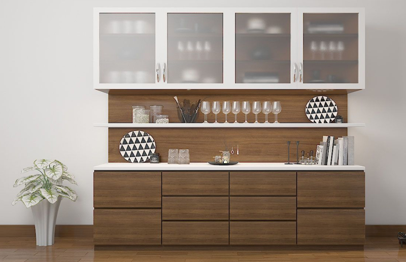 A crockery unit is an ornamental furniture unit that adores the kitchen area or dining area. A crockery cabinet completes the decor of a kitchen area. The beauty of your dazzling porcelain will go in vain without an almirah. This fantastic furniture unit will undoubtedly impress your guests. So, get a brand new kitchen crockery unit and showcase your beautiful ceramics and cutlery, and impress your home guests.